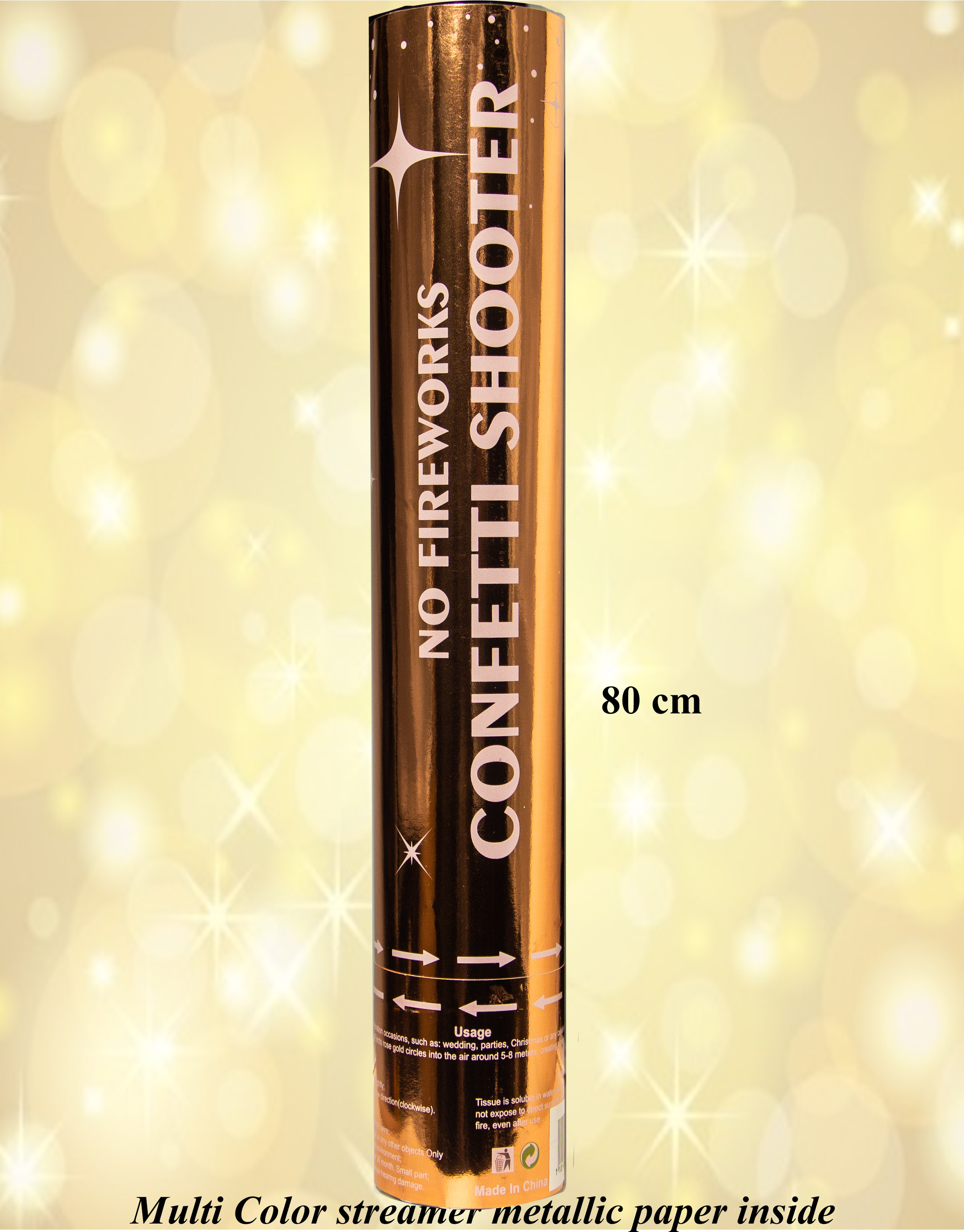 Rose Gold Confetti Poppers Good quality and powerful Confetti Popper with inside multi-color Streamer for easy clearing.