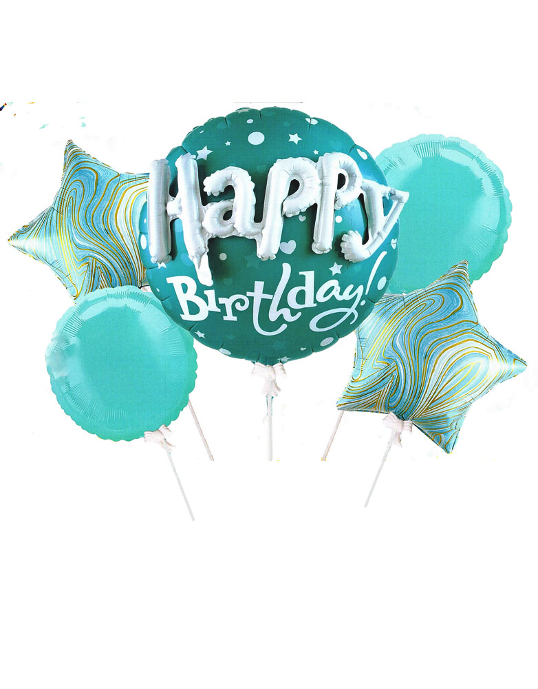 3D Happy Birthday Foil Balloon Set-Turquoise Color