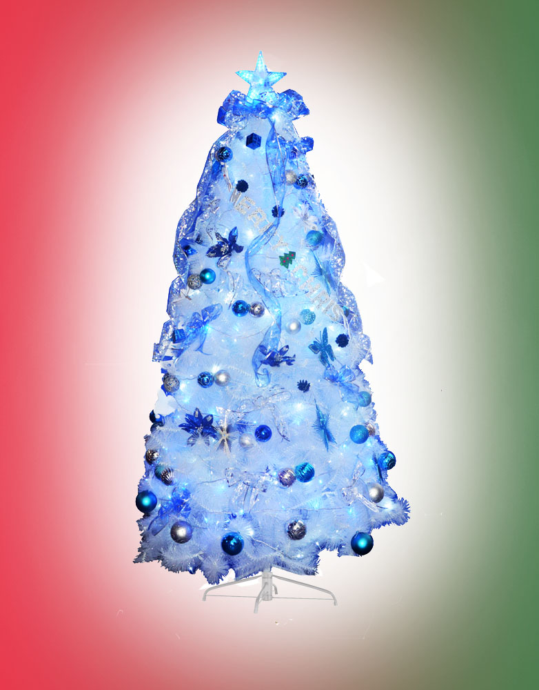 Decorated with Blue Christmas Ornament and Blue LED lights